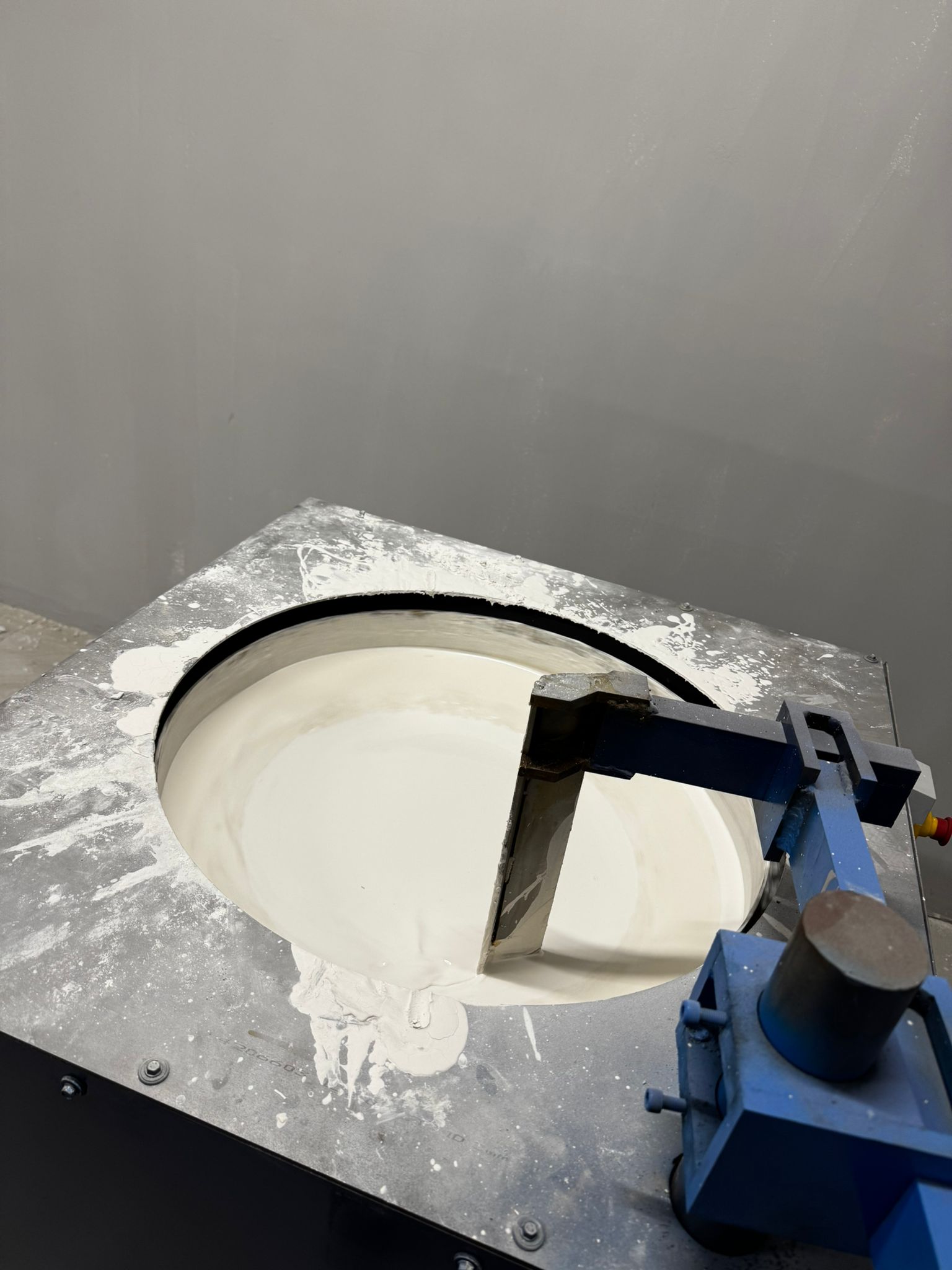 With our robotic coating process, the surroundings of the wax cluster are coated with refractory material in mud baths. Ceramic coated models are kept in laboratory conditions for optimum humidity and temperature stabilization in a climatic environment.